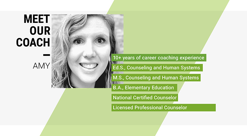 “Amy was very empathetic. She really listened to me. That meant a lot—that she listened and provided guidance. She was very honest, and she pointed out my strengths. She really coached me.”